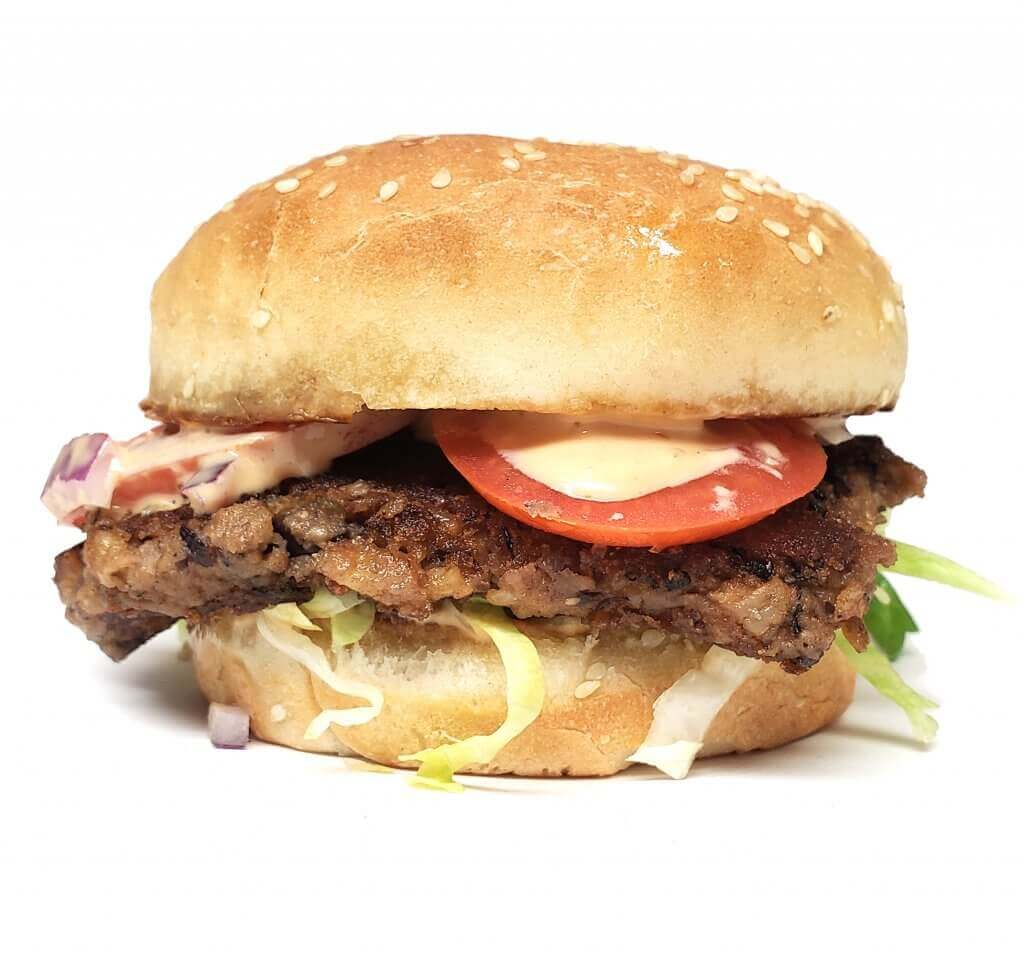 A black bean and brown rice veggie patty, topped with lettuce, tomato, onion and Rocket Sauce.